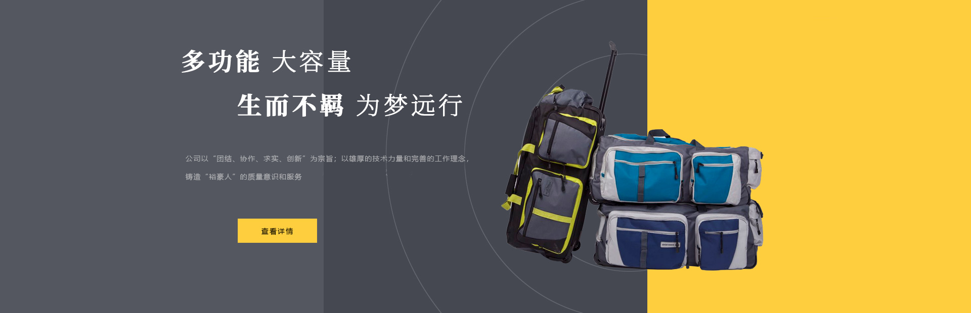 本公司是一家集設(shè)計,制造,加工,貿(mào)易為一體的專業(yè)箱包生產(chǎn)出口企業(yè)。已有20多年箱包生產(chǎn)經(jīng)驗。公司廠區(qū)位于中國浙江省海寧市鹽官工業(yè)園區(qū),占地15000平方米,建筑面積10000平方米,員工150人,年生產(chǎn)能力260萬只(套)。 公司以尼龍,滌淪,牛津布,P...
